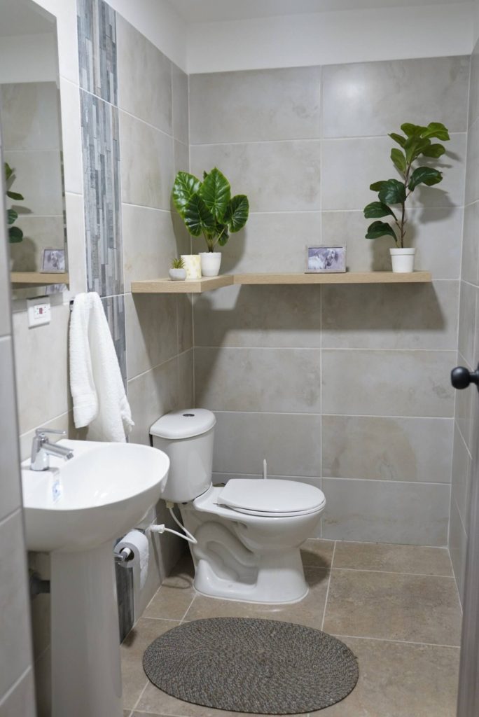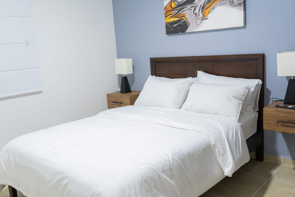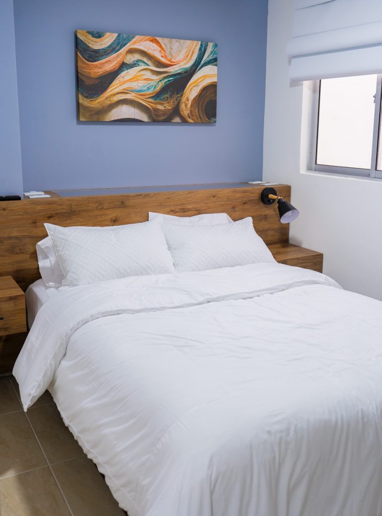 Este moderno apartamento, disponible para renta por días, semanas o meses, cuenta con 2 habitaciones, cada una equipada con una cómoda cama doble y una variedad de opciones de almohadas. Dispone de 2 baños con ducha de agua caliente y un baño social adicional para mayor confort.